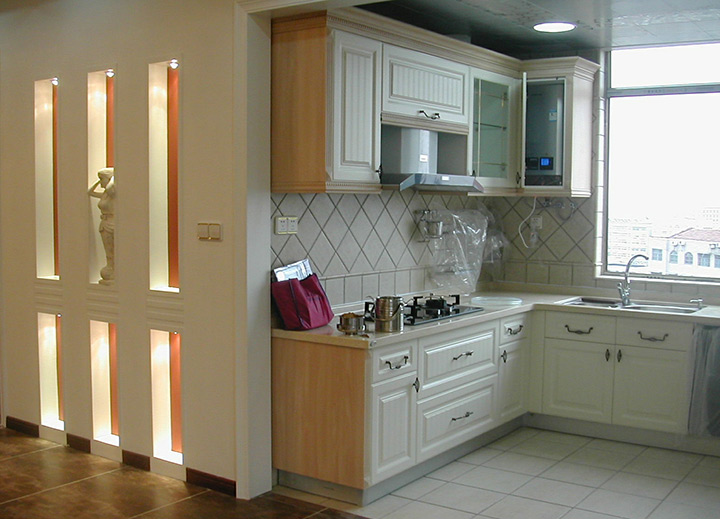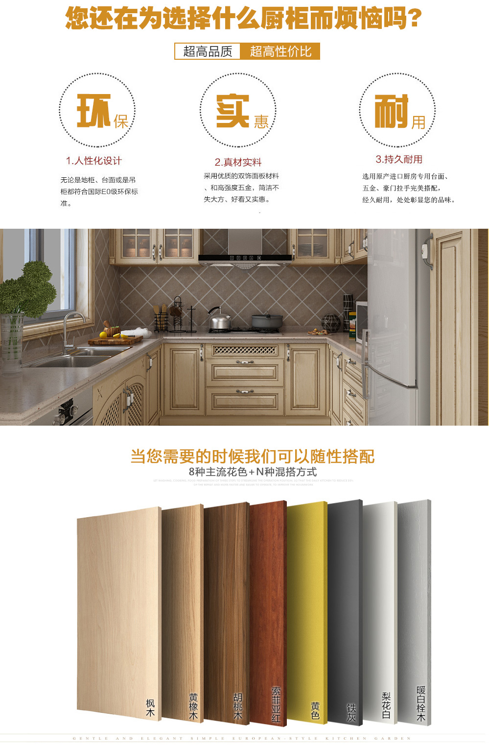 2、實(shí)木復(fù)合櫥柜以實(shí)木拼接料為基材,表面貼實(shí)木皮,同樣能達(dá)到實(shí)木的視覺(jué)效果;