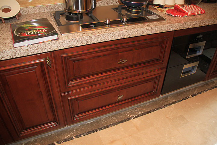 3、實(shí)木貼面櫥柜在密度板的表面雙貼實(shí)木皮。