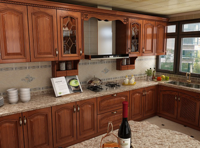 2、實(shí)木復(fù)合櫥柜以實(shí)木拼接料為基材,表面貼實(shí)木皮,同樣能達(dá)到實(shí)木的視覺效果;