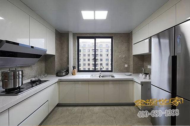 2、整體櫥柜是將水、火、電、氣完美的結合在一起的一種櫥柜類型,既方便又實用。也大大的增強了它的安全性。