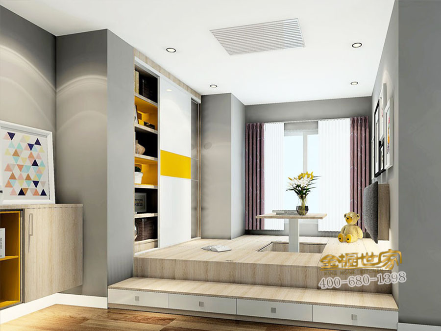 一個榻榻米=睡床+工作臺+茶室+瑜伽室,榻榻米改變的不僅讓收納變大,空間變寬,而且能帶給使用者更多的生活方式。