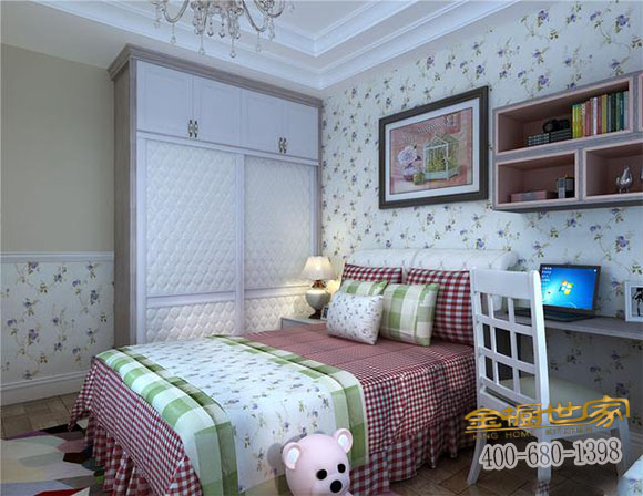 兒童房充滿了活潑歡快的調(diào)性,背景墻上以花為主配上純白色衣柜,具也能營(yíng)造浪漫舒適氣氛。