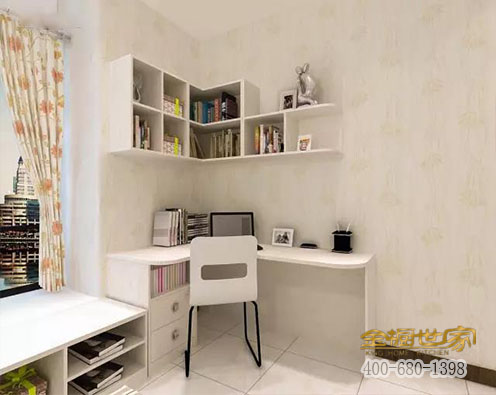 利用墻角空間,L型書桌設(shè)計(jì)感非常強(qiáng),可以將書桌的空間設(shè)計(jì)大點(diǎn),方便家長解答孩子寫作業(yè)中遇到的難題。
