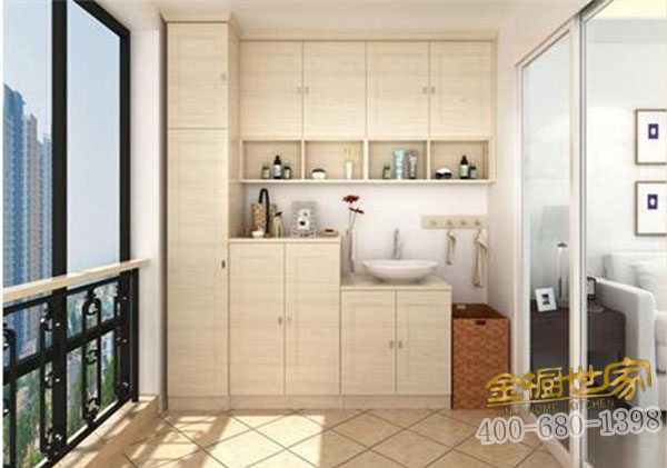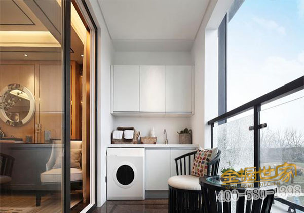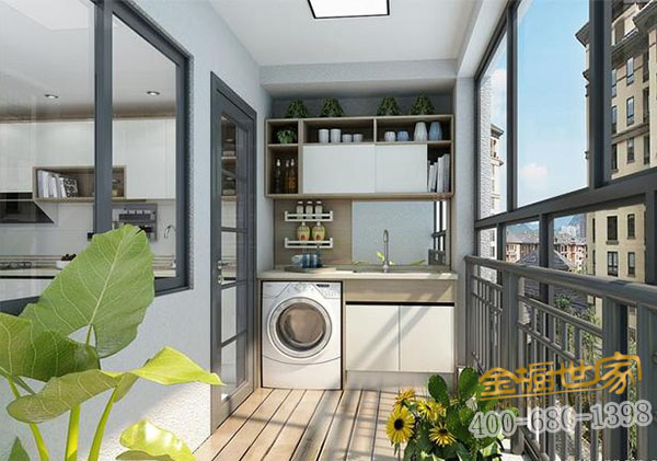 陽臺夠?qū)挻?,洗漱區(qū)(手洗區(qū)),機洗區(qū),收納區(qū),都可以完美地融合在一面墻之中。