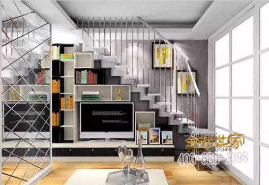 階梯造型的展示柜與電視柜組合,一柜搞定家里客廳收納需求!