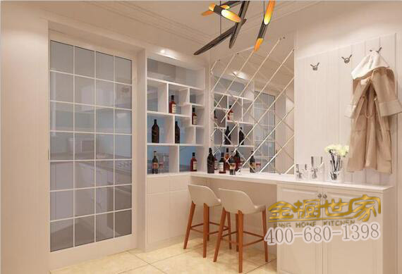 一張臺吧加上嵌入的酒柜這樣也成了課題一道美麗的風(fēng)景線。