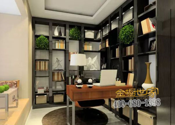 書房書柜設(shè)計(jì):開放式和封閉式書柜結(jié)合設(shè)計(jì),便于分類收納。